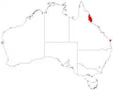 It grows in rainforests in Queensland from Port Douglas to Cardwell.[3]