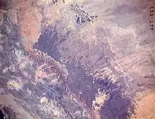 The Harrat comprises volcanic fields formed by tectonic activity from the Oligocene through to the Quaternary period.[7] It is the largest of several volcanic fields on the Arabian Plate,[8] containing more than 800 volcanic cones and around 140 dikes.[7] Activity began during the Miocene; a younger eruptive stage, at the SE end of the volcanic field, occurred during the late-Pleistocene and Holocene.[9] It is known to have erupted in historic times.[10][11]