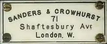 Established in 1900, Crowhurst teamed with Harold Armytage Sanders to form the firm of Sanders and Crowhurst that became an agent for W. Watson and Son. The going interest was to serve as lantern and slide dealers and also offer service as opticians.[8] The partnership dissolved on 21 October 1908. When the partnership dissolved in 1908, Sanders continued in business as Sanders and Company at the Shaftesbury Avenue address, and Crowhurst continued in business at the Hove branch location.[9]