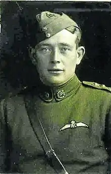 In 1915 he entered the Australian Flying School at Point Cook, Victoria as an engineer, but resigned 2 weeks later. He travelled to England to join the Royal Flying Corps in 1916 to have an opportunity of pilot training, and was commissioned three weeks later. He became Fighting Instructor (Turnberry, Scotland) and Chief Fighting Instructor in the RFC (at Marske Aerodrome in North Yorkshire) and trained over 2,700 pilots.[4] In 1918 he received the Air Force Cross, and when demobilised in 1919, he held the rank of captain.[5]