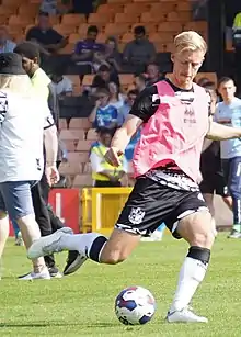 ![]() Charsley warming up at Vale Park in May 2022. | |||