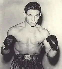 He had a convincing win on 14 January 1949 in Binghamton, New York, 1:14 into the first of six rounds, when he scored a knockout, with a right cross that broke the jaw of his opponent Billy Kilby.[7] On 30 May 1949, though outweighed by 14 pounds, he defeated Johnny Pretzie in Brooklyn in a technical knockout, 2:38 into the fourth round. Pretzie was a strong puncher with an impressive knockout record, who had met Rocky Marciano only two months earlier.[8][3]