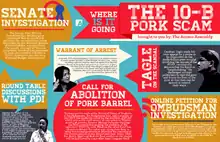 The scandal and its ensuing litigation hearings popularized the concept of congressional hearings or senate investigations in aid of inquiry and not merely question hours, as well as litigation cases with the Sandiganbayan or Supreme Court as a common resort to major political scandals.[5] The case has become a metaphor for presidents who choose to hide pieces of evidence in corruption allegations that may implicate them, and has become a model of comparison used by political analysts for corruption scandals such as in the Pharmally inquiry involving President Rodrigo Duterte[21] and the PDAF or Pork barrel scam involving Janet Napoles.[22] The common comparison was usually to question whether the president may block evidence or ban the appearance of those complicit, for instance the President may insist the Congressional inquiries are for question hour and not in aid of legislation. On the other hand, they may decide to be accountable and allow the attendance of their subordinates and associates.[20]