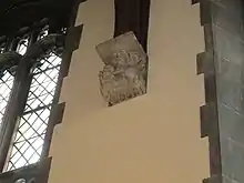A variety of intimate details can also be found in the interior. Below grade, backstage, at the rear wall of the theatre, there are scars formed by service ammunition, giving the building a sense of character. There are also elements forged into the walls of the building, like the first occupants of the house, who are remembered on the south façade, as well as carvings over the bay windows of the map room which depict the principal units that were stationed there during the war. The Great Hall holds another souvenir, inconsistent with the Gothic setting: one of the stone corbels has been carved to represent an officer cadet of 1916 in uniform, carrying his field pack and rifle.[10]
