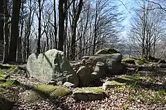 The site, on the western slope of the Hartberg north of Schankweiler, dates from about 3000 BC. It is the only Neolithic tomb of this type in Rhineland-Palatiate. It is a gallery grave, with two chambers, formed from sandstone slabs and blocks, the main chamber measuring about 2 by 1.2 metres (6 ft 7 in by 3 ft 11 in). The entrance to the tomb is an incomplete slab with part of a circular opening about 70 centimetres (28 in) in diameter. There is the lower half of a slab separating the main chamber and a poorly preserved antechamber. There were originally roof slabs, and the grave was probably once covered with a mound.[1][2][3]