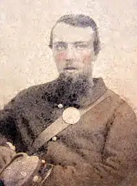 Hartshorn (pronounced HARTS-hurn, though New Englanders in this region usually pronounce it "HAHTZ-hun") was born on July 14, 1840 to Susannah Putnam Hartshorn (1816–1903) and her husband, John Hartshorn (1811–1878), a deacon in the Baptist Church. The younger Hartshorn grew up in South Lyndeborough in a house at the corner of what today is Citizens' Hall Road and Forest Road/Route 31. On May 20, 1861, he enlisted in the 2nd New Hampshire Volunteer Regiment, infantry division, and served as part of the Army of the Potomac in Virginia. On May 5, 1862, Hartshorn was killed during the Battle of Williamsburg in Virginia, becoming the second Lyndeborough resident to die in the Civil War.[4] Harvey Holt, the namesake for the GAR post, was the town's—and according to Lyndeborough's official town history, state's—first Civil War fatality, having perished during the First Battle of Bull Run.[5]