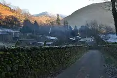 Hartsop Hall, in the care of the National Trust, is located on the far side of the valley from the village. The hall dates from the 16th century, formerly the home of the de Lancasters; in the 17th century it passed into the ownership of Sir John Lowther, a member of the family that later became Earls of Lonsdale. After that, it became used as an ordinary farmhouse. Local history relates that when the hall was extended in the 18th century, it was built across an ancient right-of-way, a right which at least one dalesman insisted on exercising, by walking through the hall.[1]