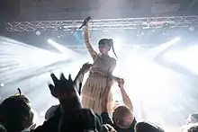 She has introduced herself as a "riot grrrl",[84][85][86] which she believes is "one of the few 'names' that I feel I can use my energy to live with or fight against the inconveniences and biases that come from advocating it."[85] On her interview with Japanese media Natalie, she mentioned "Within myself, my music is inherently pernicious and cannot be harmless to everyone. If it is treated as harmless by bias or prejudice, I think that's not right, and would like everyone to touch it as such."[45] Nemuri mentioned, "There's no way it's not violent to appeal something to someone. I don't want it to turn into war, massacre, or discrimination, so I'm doing music. I know it's hot and depressing. "Do you know how mankind won democracy? It must have started with anger!"[87] Nemuri added, "Taking away the power to think is the easiest way for those who rule and those who obtain wealth. It may sound like an exaggeration, but if this sounds like an exaggeration, you've probably been robbed. I think art is the most peaceful way to fight against such things. That's why I want to compete with art."[87]