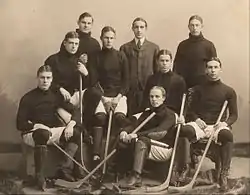 The two teams played again the following winter; Brown won that game by a score of 2–1. The Crimson would get their first recorded win in program history in 1900 with a 10–1 win over MIT.[6] That same season Harvard beat Brown in back to back games. On February 26, 1900, Harvard played Yale for the first time.[4] The game was held at the St. Nicholas Rink in New York and the 4–5 loss was the Crimson's only loss of the 1899–1900 season.[4][6]