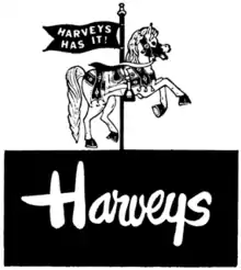 The original Harveys department store was opened by Fred Harvey in 1942 at the corner of 6th Avenue North and Church Street in Nashville, Tennessee. The site was the former home of a post-Reconstruction Nashville retailer, Lebeck Brothers/Denton & Company, which rose to prominence in the 1870s. When the Lebeck Brothers’ property became available due to the store's closing, Fred Harvey founded Harveys department store on the property. The store expanded to eventually cover the entire block of Church Street from 6th Avenue to 5th Avenue.[1] The store brought the first escalators to Middle Tennessee and the decor featured several carousel horses which had been salvaged from Glendale Park, a local amusement park that closed during the Great Depression.[1][2] The store was also known for its lavish Christmas decorations as well as the annual Nativity scene it sponsored in Centennial Park.[3][4]