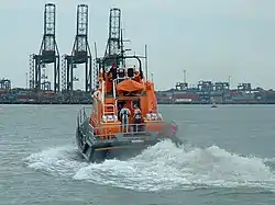 Harwich Lifeboat Station is a Royal National Lifeboat Institution (RNLI) station located in the town of Harwich in the English county of Essex.[1] The station is positioned on the southern side at the mouth of the River Orwell estuary. The station serves a particularly busy section of coastline with Harwich being a very busy ferry terminal.[2] Across the estuary is the Port of Felixstowe which is the United Kingdom's busiest container port.[3]