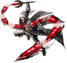 Haseo is introduced in the .hack//G.U. games as a famous player from "The World", a player killer known as "The Terror of Death".[29] He is searching for the legendary player killer Tri-Edge, who left his friend Shino in a coma in real life after killing her character.[30] He is guided by his former comrade, Ovan, to fight the AI Azure Kite under the assumption he is Tri-Edge. However, Haseo loses the fight and the PC completely reset.[31] As a result, Haseo is mistaken for a new player by Gaspard and Silabus, who ask him to become their guildmaster. Haseo also agrees to join the guild G.U. led by Yata, a System Administrator in The World R:2, to discover the reason behind a sudden increase in AIDA activity and Tri-Edge using it to leave players in a coma.[32] Haseo gains an "Avatar", Skeith, The Terror of Death, hidden within his PC, that has the ability to destroy AIDA.[33] Although initially cold and antisocial, Haseo comes to appreciate the friendships he makes across the trilogy. He also starts developing feelings for Atoli, a fellow player who encourages him to appreciate his time in The World, but is not until a later part of the trilogy that Haseo understands his feelings.[34]
