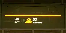 Hashimoto Station (橋本駅) is a subway station on the Fukuoka City Subway Nanakuma Line in Nishi-ku, Fukuoka in Japan. Its station symbol is a picture of maple leaves in front of an orange mountain, because there used to be Momiji-Hachimangu(ja:紅葉八幡宮).