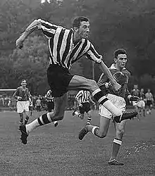 Hasse Persson was something of a bohemian. Many are the stories of a willful and exuberant gentleman who often went his own ways. After a turbulent time, he left Helsingborgs IF. In 1955, HP wrote a contract with Helsingborgs IF arch rivals, Landskrona BoIS. In Landskrona, he soon became a big star in the city and it is said that he alone brought big crowds to Landskrona IP. There are many citizens in Landskrona who believes that the club never had a better player than Persson. Many of those who experienced the 1950s and 1960s have their special Hasse Persson-memories. This is almost always about goals from impossible distances, rocket shots, phenomenal assists or various other technical showpieces.[2]