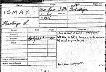 Ismay left India for Somaliland in late July 1914, and arrived on 9 August, shortly after the outbreak of the First World War in Europe.[18][19] Like other officers in Somaliland, Ismay was "unhappy at being left out of the great war"[20] and repeatedly asked for a transfer to the European front.[21] In the end, however, Ismay's superiors decided that he was "so indispensable that, despite his longing for action in Europe, he was retained in Somaliland until 1920."[17]