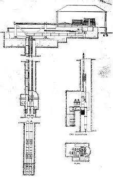 This was one of their more successful engines. Patented in 1871, a company brochure lists 46 examples of these large engines built up to 1906. The leaflet also gives 32 examples where a smaller version of this engine was installed underground. The differential was a small engine resembling a boiler feed pump which was used to control the speed of the larger engine.[3][4]