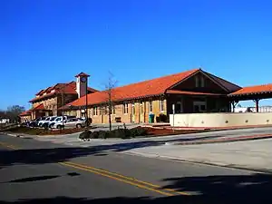 Hattiesburg station, also known as Union Station and New Orleans & Northeastern Passenger Depot, is an Amtrak intercity train station located in Hattiesburg, Mississippi, at 308 Newman Street. The station is served by Amtrak's Crescent passenger train, and is the last regular stop before its southern terminus in New Orleans. On June 14, 2001, the depot was selected as a Mississippi Landmark (035-HAT-0088-NRD-ML),[2] and in 2002, the depot was designated as a contributing resource within the Hub City Historic District (Boundary Increase) (Reference Number 02000855, listed 2002-08-09) on the National Register of Historic Places.[3]