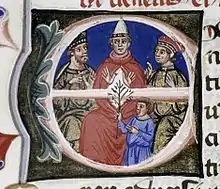 The concentration of property reflected the circumstances of the abbey's foundation by a powerful territorial dynasty that maintained its interest in the Marches for at least two centuries.[56] As William FitzAlan was always recognised as founder, a Henry II's charter of about 1176 gave his successors custody of the abbey whenever the position of abbot was vacant.[61] The first William FitzAlan was buried in Shrewsbury Abbey,[62] but subsequent heads of the family were buried at Haughmond for over 150 years. Even after the FitzAlans acquired the prestigious earldom of Arundel in 1243, they continued to regard the abbey as theirs and to call the canons canonici mei. When Edmund FitzAlan, 9th Earl of Arundel was executed at Hereford in 1326, his body was buried there, despite his wish to be buried at Haughmond. Abbot Nicholas of Longnor protested and was able to have the body transferred to Haughmond.[4]