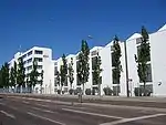 As the seat of a factory of the powerful Messerschmitt corporation, Haunstetten became a wartime production center during World War II. Two large production centers, Werk III and Werk IV were located in Haunstetten, in what is now Universitätsviertel, although now these production facilities belong to EADS and DaimlerChrysler Aerospace. The number of production facilities located in Haunstetten led to pressure on the local housing market as production laborers, researchers and engineers came from all over Germany to work for the Messerschmitt facilities. This led to the construction of the Messerschmittsiedlung (English: Messerschmitt settlement), which was completed in 1937 and was expanded in 1939. This influx of workers also lead to a rapid increase of the resident population of Haunstetten, which increased from 3,000 in 1933 to 8,000 in 1945. Although only 6,000 worked at the Messerschmitt facilities in 1936, this number grew to 9,000 by 1939 and by 1944 the worker population had reached 18,000 - of which 47% were either foreign or forced laborers. Three barracks were built for forced laborers to live in. Further forced labor for the Messerschmitt production facilities was obtained from a satellite of Dachau concentration camp, which was located near a gravel quarry close to the border with Inningen.