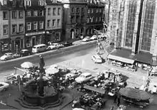 Under Mayor Reinhold Zundel, the Hauptstrasse was modified and pedestrianised. In 1969, through-traffic was banned. From 6 November 1971, the western part up to Universitätsplatz was closed to all traffic on weekends. On 15 July 1972, the section from Universitätsplatz to Marktplatz was converted to a tram-only street and from 1 January 1974, it was also closed to all traffic on weekends. On 2 July 1975 and on 29 April 1976, the town council decided to convert most streets of the Altstadt into pedestrian zones. On 4 July of the same year, the trams were stopped and the tracks were covered with asphalt on 20 September; the powerlines for the trams were removed on 7 January 1977. The conversion to a pedestrian zone was completed on 30 September 1978.[5]