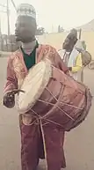 The Hausa are culturally and historically closest to other Sahelian ethnic groups, primarily the Fula; the Zarma and Songhai (in Tillabery, Tahoua and Dosso in Niger); the Kanuri and Shuwa Arabs (in Chad, Sudan and northeastern Nigeria); the Tuareg (in Agadez, Maradi and Zinder); the Gur and Gonja (in northeastern Ghana, Burkina Faso, northern Togo and upper Benin); Gwari (in central Nigeria); and the Mandinka, Bambara, Dioula and Soninke (in Mali, Senegal, Gambia, Ivory Coast and Guinea).[54] All of these various ethnic groups among and around the Hausa live in the vast and open lands of the Sahel, Saharan and Sudanian regions, and as a result of the geography and the criss crossing network of traditional African trade routes, have had their cultures heavily influenced by their Hausa neighbours, as noted by T.L. Hodgkin “The great advantage of Kano is that commerce and manufactures go hand in hand, and that almost every family has a share in it. There is something grand about this industry, which spreads to the north as far as Murzuk, Ghat and even Tripoli, to the West, not only to Timbuctu, but in some degree even as far as the shores of the Atlantic, the very inhabitants of Arguin dressing in the cloth woven and dyed in Kano; to the east, all over Borno, ...and to the south...it invades the whole of Adamawa and is only limited by the pagans who wear no clothing.”[55][56] In clear testimony to T. L Hodgkin's claim, the people of Agadez and Saharan areas of central Niger, the Tuareg and the Hausa groups are indistinguishable from each other in their traditional clothing; both wear the tagelmust and indigo Babban Riga/Gandora. But the two groups differ in language, lifestyle and preferred beasts of burden (the Tuareg use camels, while Hausa ride horses).[57]