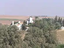 The farm was built on the lands of a depopulated Arab village, Huj. According to Izzeldin Abuelaish the mosque of this village has been serving as the pen for Sharon's Arabian thoroughbred horses.[2]