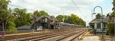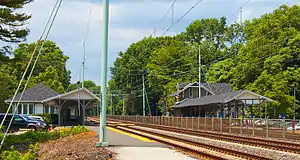 The station is unique as there are 4 generations of structures at the station including the 1870 station house, c.1890 canopies, the 1898 north addition to the 1870 building, and a 1916 brick station/post office on the south side of the tracks. Haverford is also one of the few stations where the original station building was located on the outbound side of the tracks which explains the need for the inbound ticket office (on the south side) for commuters going into center city when the line was electrified.[6] A freight house was located immediately west of the 1870 station building, but was removed in the late 1880s when the PRR moved Haverford Station Road under the grade in an improvement project to eliminate grade crossings on the mainline.