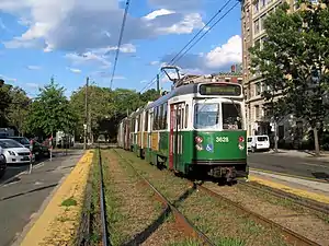 Hawes Street station is a light rail surface stop on the MBTA Green Line C branch, located in the median of Beacon Street west of Hawes Street in Brookline, Massachusetts. The station consists of two side platforms which serve the C branch's two tracks. With 339 boardings on an average weekday in 2011, Hawes Street has the lowest ridership on the C branch and fourth-lowest on the entire Green Line.[1]