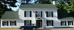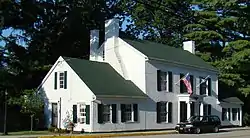 The Hawkins House has a central section with two-bay wings attached on both sides to central area.