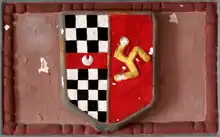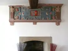 Anthony's son, Baldwin Acland (1593–1659) married Elizabeth Tremayne at Lamerton in 1615, a year after his father's death.[4] In the "Inner Room", next to the Great Hall at Hawkridge Barton survives a plaster overmantel showing the arms of Acland impaling Tremayne, representing this marriage.[3][lower-alpha 2] Elizabeth was the fifth daughter of Arthur Tremayne (1553–1635) of Collacombe in the parish of Lamerton, Devon, and his wife Mary,[21] a daughter of Admiral Sir Richard Grenville (1542–1591), the famous captain of the Revenge.