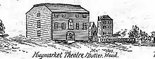 The Haymarket Theatre (1796-1803) or Hay-Market Theatre was a theatre in late-18th century Boston, Massachusetts.[1] Organized by Charles Stuart Powell, it occupied a large, wooden building "opposite the Mall on Common (later Tremont) Street, near Hatch's Tavern."[2] In addition to dramatic plays, the theatre presented some 62 musical entertainments during its first 5 years.[3] The Haymarket "was seldom used after 1800, and on March 3, 1803, it was offered for sale at auction on the condition that it be removed in 60 days."[2]