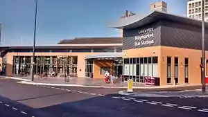 The bus station was developed at a proposed cost of £2m in mid-1994, coinciding with a major refurbishment of the adjacent Haymarket Shopping Centre complex.[1] From January 2015 the bus station was closed for redevelopment to double the size, the new bus station opened during May 2016.[2]