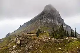 Haystack Butte is a 7,486-foot-elevation (2,282-meter) summit located in the Lewis Range, of Glacier National Park in the U.S. state of Montana. It is situated one mile west of the Continental Divide, in Flathead County, above the Weeping Wall on its south slope. Topographic relief is significant as the west aspect rises 3,900 feet (1,200 meters) above McDonald Creek in less than 1.5 mile. It can be seen from Logan Pass, and from Going-to-the-Sun Road which traverses the west and south slopes of the peak. The nearest higher neighbor is Mount Gould, 1.07 miles (1.72 km) to the northeast.[1] Climbing access is via the Highline Trail. This geographical feature's descriptive name was on maps as early as 1904, and was officially adopted March 6, 1929, by the United States Board on Geographic Names[3]