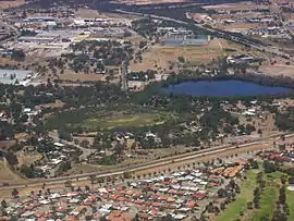 ![]() Hazelmere lakes in foreground, Great Eastern Highway Bypass in upper right | |||||||||||||||