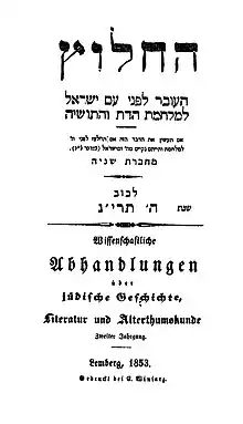 He-Ḥalutz (Hebrew: הֶחָלוּץ, lit. 'The Pioneer'; German: Wissenschaftliche Abhandlungen über Jüdische Geschichte, Literatur, und Alterthumskunde, lit. 'Scientific Treatises on Jewish History, Literature, and Antiquities') was a Hebrew magazine which appeared irregularly between 1852 and 1889. It was edited and published by Joshua Heschel Schorr as the realization of a plan mapped out by his friend and teacher Isaac Erter, who had died one year before the first volume appeared.[1]