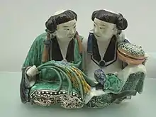 He-He Er Xian, translated as the Immortals of Harmony and Union and as the Two gods of Harmony and Union, are two Taoist immortals. They are popularly associated with happy marriages. He and He are typically depicted as boys holding a lotus flower (荷, hé) and a box (盒, hé).[1]
