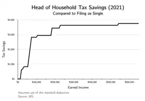 - In 2021, a single parent with one child who uses the standard deduction and has a pre-tax income of $18,677 (the Census Bureau's poverty threshold for a household with a parent under 65 and a child under 18[10]) saves $613 by filing as a head of household rather than a single filer. A single parent who uses the standard deduction and has a pre-tax income over $542,400, by contrast, would save $3,764.50. As income decreases further below the poverty line, the percent difference between two grows further.