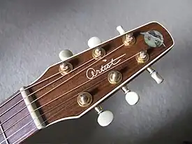 A headstock or peghead is part of a guitar or similar stringed instruments such as a lute, mandolin, banjo, ukulele and others of the lute lineage. The main function of a headstock is to house the tuning pegs or other mechanism that holds the strings at the "head" of the instrument; it corresponds to a pegbox in the violin family. At the "tail" of the instrument the strings are usually held by a tailpiece or bridge. Machine heads on the headstock are commonly used to tune the instrument by adjusting the tension of strings and, consequently, the pitch of sound they produce.