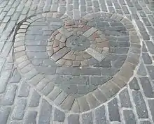 The club took its name from historic county Midlothian, dating from the Middle Ages, as well as the Heart of Midlothian mosaic on the Royal Mile, which marks the historic entrance to the Old Tolbooth jail,[4] which was demolished in 1817 but was kept fresh in the mind by Walter Scott's novel The Heart of Midlothian.[13][14]