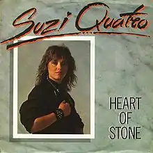 "Heart of Stone" is the twenty-sixth solo single by the American rock singer-songwriter and bass guitarist Suzi Quatro. It was originally released in October 1982 as the lead single from her eighth studio album, Main Attraction, only in the UK and Spain, and was also her first single release by the record label, Polydor.[2] It was co-written by Quatro and keyboardist Chris Andrews, the latter of whom also co-produced it. The single release features the song "Remote Control" as the B-side, which also appeared on the Main Attraction album.