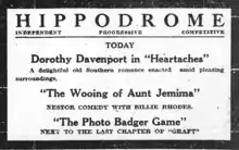 In 1916, advertising money spent on short films was minimal compared to feature films. A brief synopsis was the norm. Short films were shown in conjunction with other short films to create a "diversified program." In this case, a newspaper ad showed Heartaches playing along with two other films. The other films are: