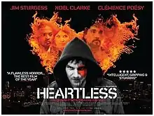 Heartless is a 2009 British psychological horror film written and directed by Philip Ridley and starring Jim Sturgess, Noel Clarke, Clémence Poésy and Eddie Marsan. This was Ridley's first film in fourteen years since 1995's The Passion of Darkly Noon. The film garnered positive reception from critics who praised the performances and dark atmospheric tone that complemented the Faustian plot.