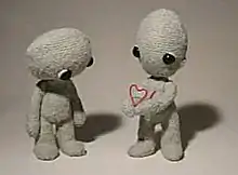 Heartstrings is a 2009 British animated short film directed by Rhiannon Evans at the University of Wales in Newport. It tells us the story of two stop-motion figures made from string, who fall in love; their love is represented by a red string that connects them at the heart.