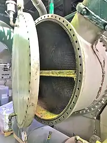 A heat exchanger in a steam power station contaminated with macrofouling.
