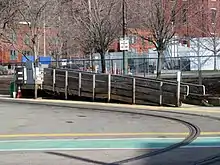 In the early 2000s, the MBTA modified key surface stops with raised platforms for accessibility as part of the Light Rail Accessibility Program. Portable lifts were installed at Heath Street around 2000 as a temporary measure.[6][7] The platform modifications – part of a $32 million modification of thirteen B, C, and E branch stations – were completed on January 13, 2003. The project included a wooden mini-high platform on the outer platform, allowing level boarding on older Type 7 LRVs.[1]