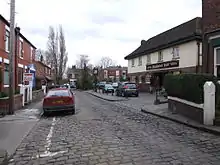 Weaving was first recorded in 1580 and by 1776 farms were being advertised as having cowsheds and large loom houses.[1] In spite of the industrial developments nearby in Stockport and Manchester, most of Heaton Norris remained agricultural, though in 1836 there were 20 mills employing upwards of 5,000.[5] The rural nature changed with the arrival of the railway station at Heaton Norris in 1840 and Heaton Chapel in 1852, when the area became largely residential in order to house workers in local mills. The majority of Heaton Norris is characterised by deck-access or high-rise estates (such as Lancashire Hill) and Victorian terraced housing.
