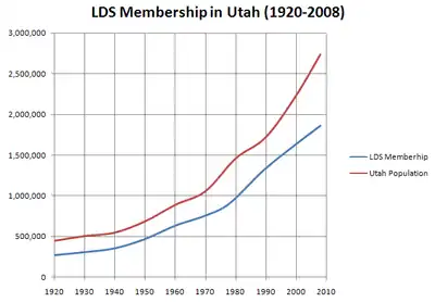 The Church of Jesus Christ of Latter-day Saints in Utah refers to the Church of Jesus Christ of Latter-day Saints (LDS Church) and its members in Utah. Utah has more church members than any other U.S. state or country.[3] The LDS Church is also the largest denomination in Utah.[4]