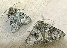 The wingspan is 32–34 mm. The length of the forewings is 14–15 mm. Meyrick describes it thus - Forewings whitish irrorated with grey, median area suffused with grey and partly mixed with orange; subbasal line whitish, edged anteriorly with black mixed with orange; first and second lines whitish, edged internally with blackish; spots outlined with black mixed with orange; subterminal line formed of orange spots, preceded by some black scales. Hindwings pale grey, with darker posterior suffusion. Larva pale dull green, or yellowish freckled with brown; dorsal line pale, dark-edged; lateral dark, indistinct; spiracles black; head ochreous-brown or dull greenish.[1]