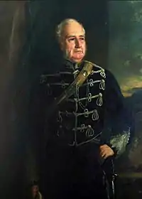 Colonel Horace Walpole (1849–1919) bought the Heckfield Place estate by private treaty in July 1895.[12] Walpole was a four-times great-nephew of the Prime Minister, Sir Robert Walpole, but the illegitimate son of the 4th Earl of Orford as a result of his affair with Lady Susan Hamilton. As such, Col Walpole was barred from inheriting the title, but on his father's death, in December 1894, he inherited considerable wealth and personal effects, enabling him to buy Heckfield Place. Improvements were made by Col Walpole to the house, including the installation of electricity, redigging the drains, and the building of a brick tower near the walled gardens, to distribute water pumped from a nearby spring, to the house, cottages and gardens.