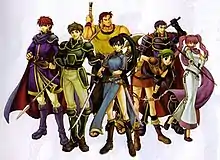![]() North American cover art featuring the three main protagonists. From left to right: Eliwood, Lyn, and Hector. | |